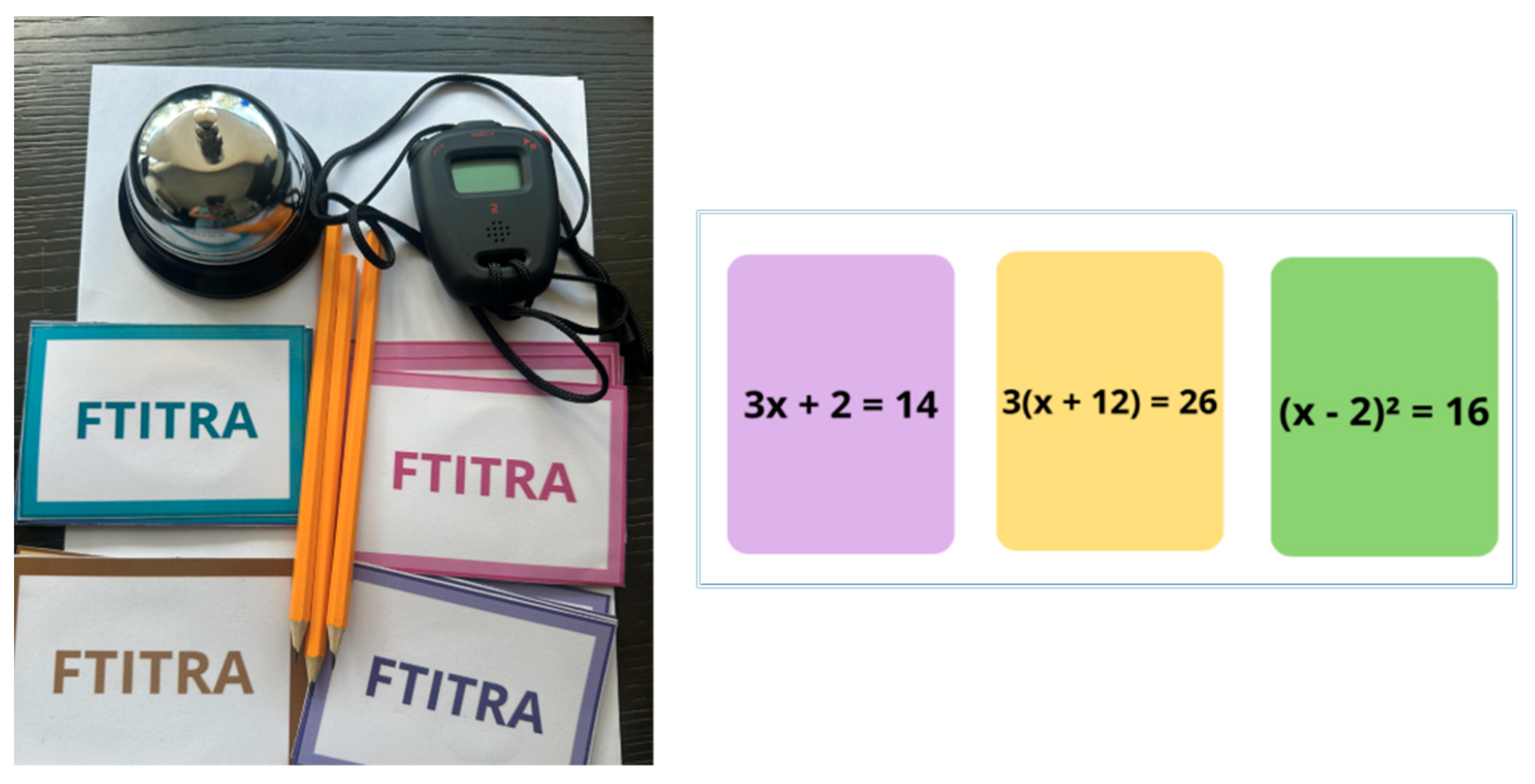 FTITRA focuses on speed, accuracy, and strategic risk management. Players compete individually to solve equations of increasing difficulty within a time limit, using a bell to signal when they have an answer (see