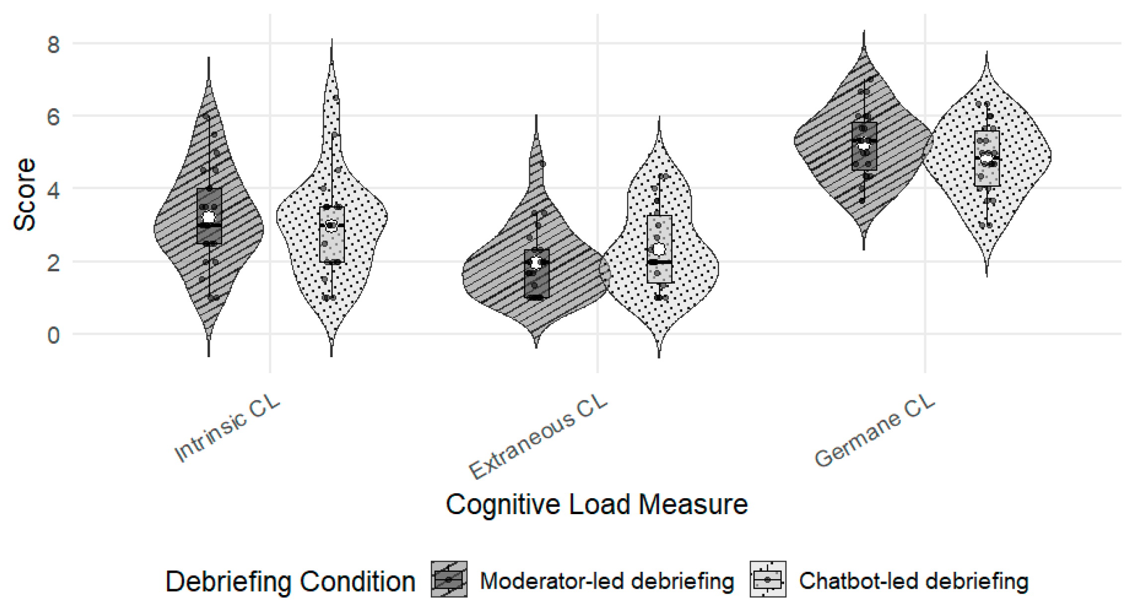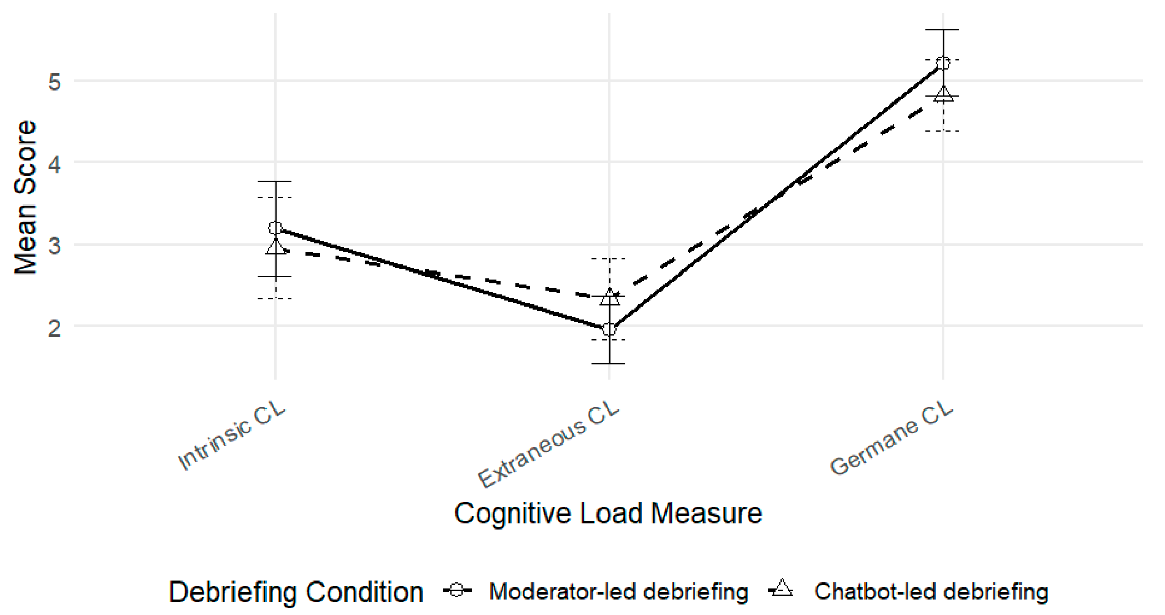 - Perceived germane cognitive load will be lower after a chatbot-led debriefing compared to a moderator-led debriefing.