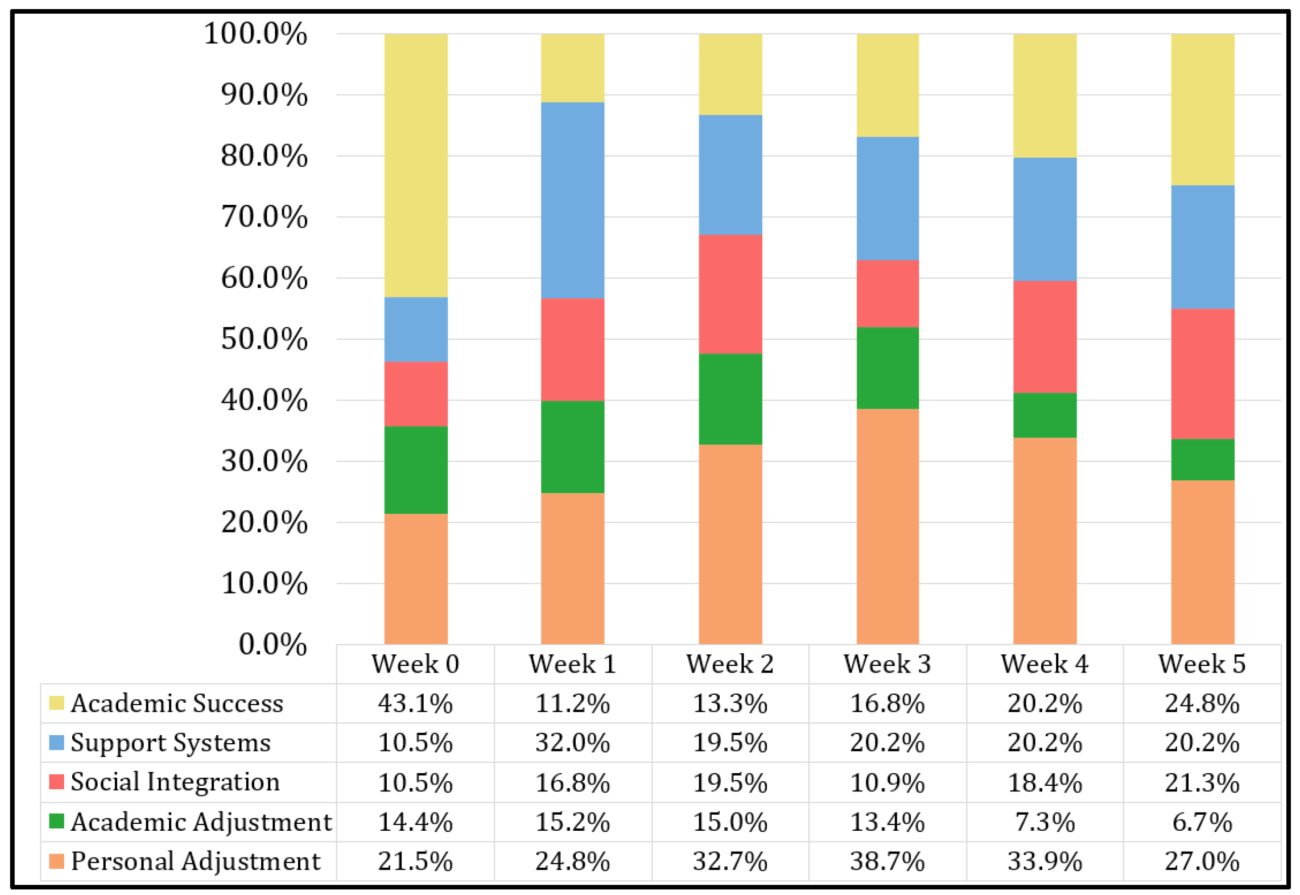 McCarten et al., 2025). By Weeks 4 and 5, students articulate a more holistic view of success that includes confidence in their learning, reduced anxiety about examinations, and the ability to manage competing academic and personal demands. This evolution highlights academic success as a dynamic construct that develops through ongoing interaction with both curricular requirements and the broader university environment (