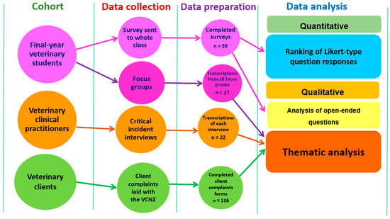The authors extend their sincere gratitude to the final-year veterinary students at MU and the veterinary clinical practitioners who generously contributed their time to the surveys, focus groups, and interviews and provided invaluable feedback. The authors are also grateful to the staff of the VCNZ for their generous cooperation in facilitating the research on client complaints.