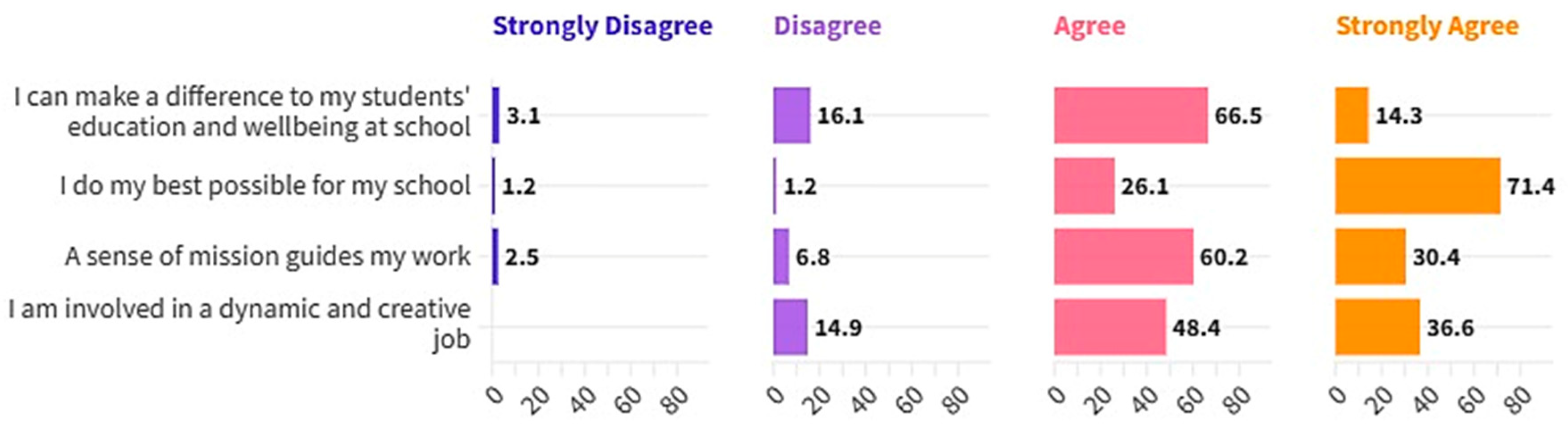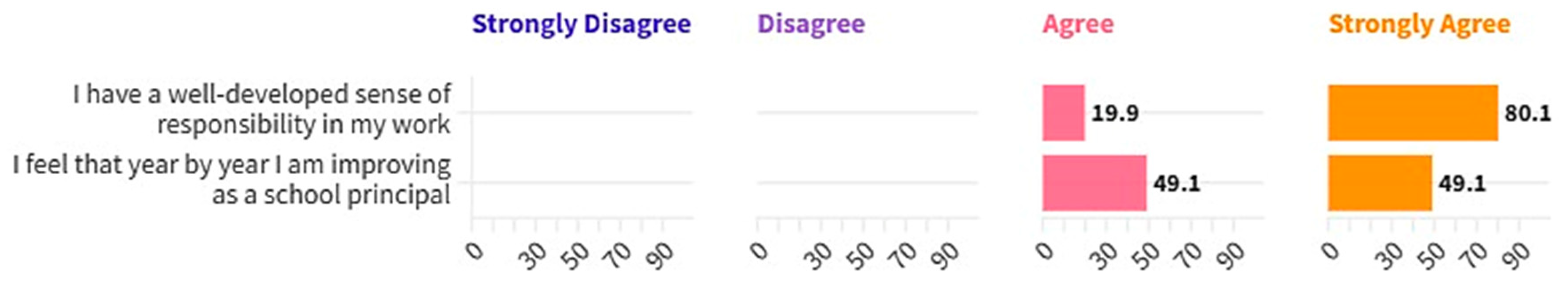 4.4. Research Question 4: School Principals’ Perceptions on the Impact of Wellbeing and Professional Practice Factors