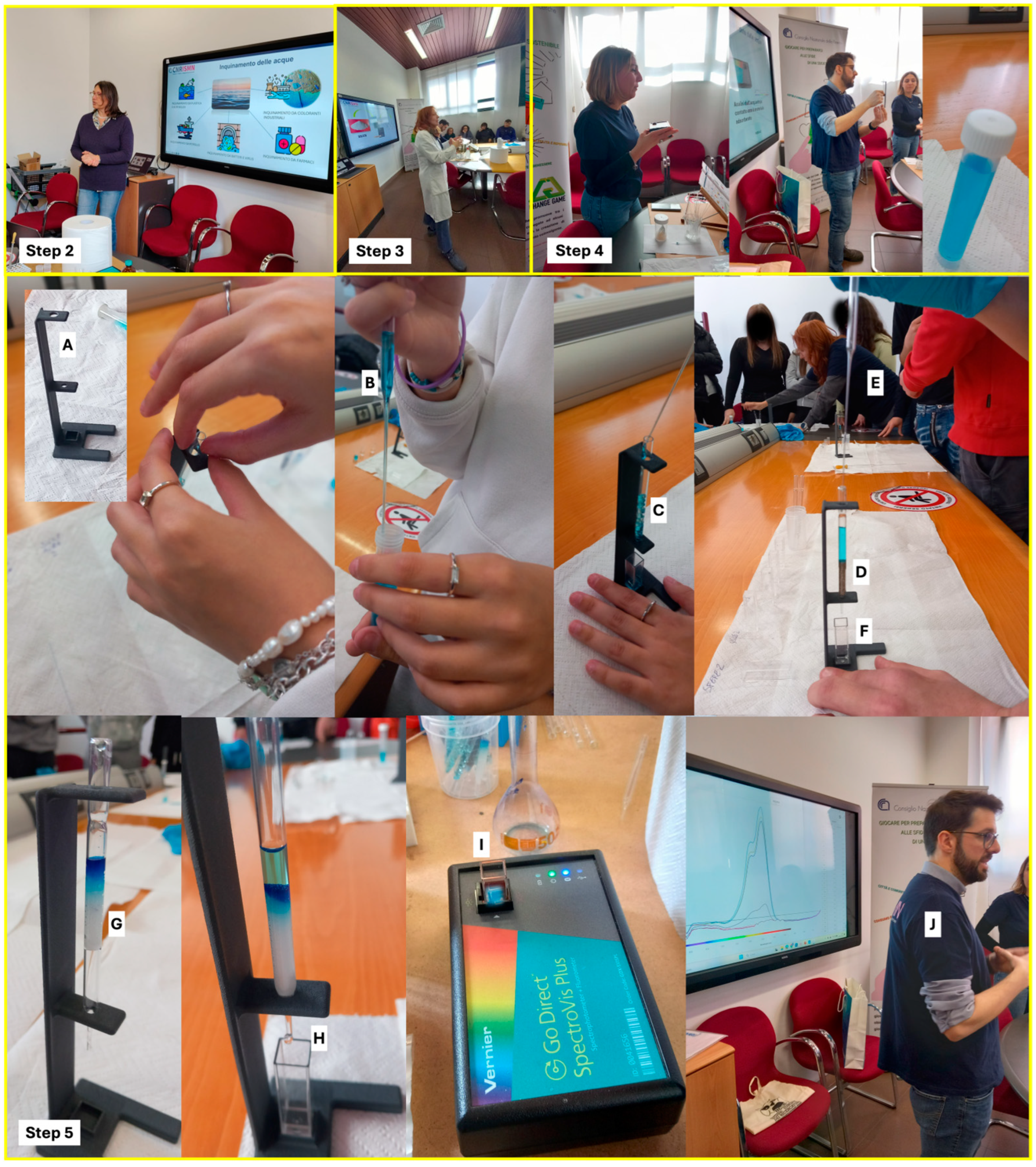 Step 5. Execution of the experiment in small groups (of 2–4 students) under the supervision of the instructor and tutor, followed by quantitative analysis of the treated water.