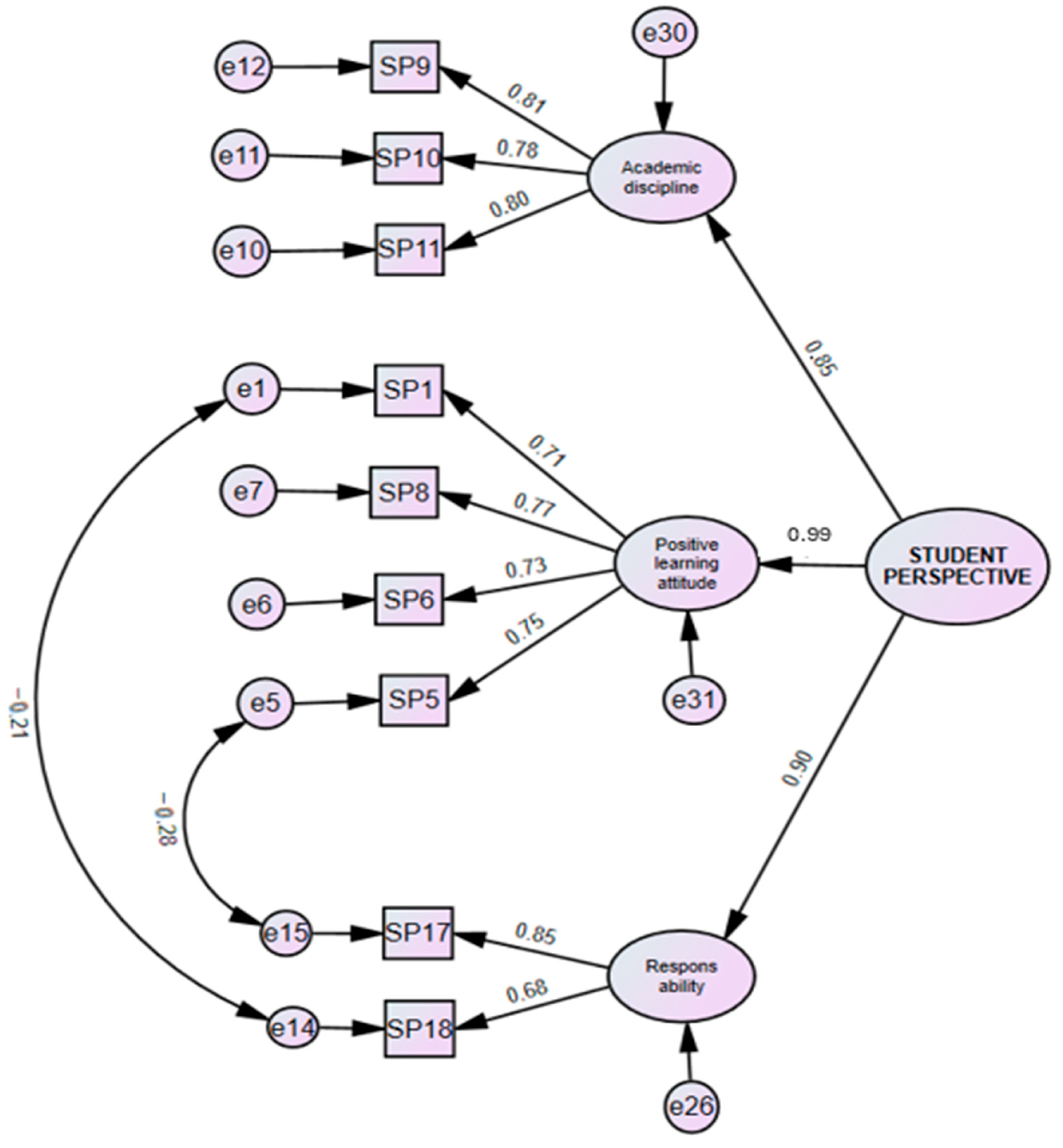 | Student perspective (3.39) | Academic discipline (3.02) | SP9 3.03 |