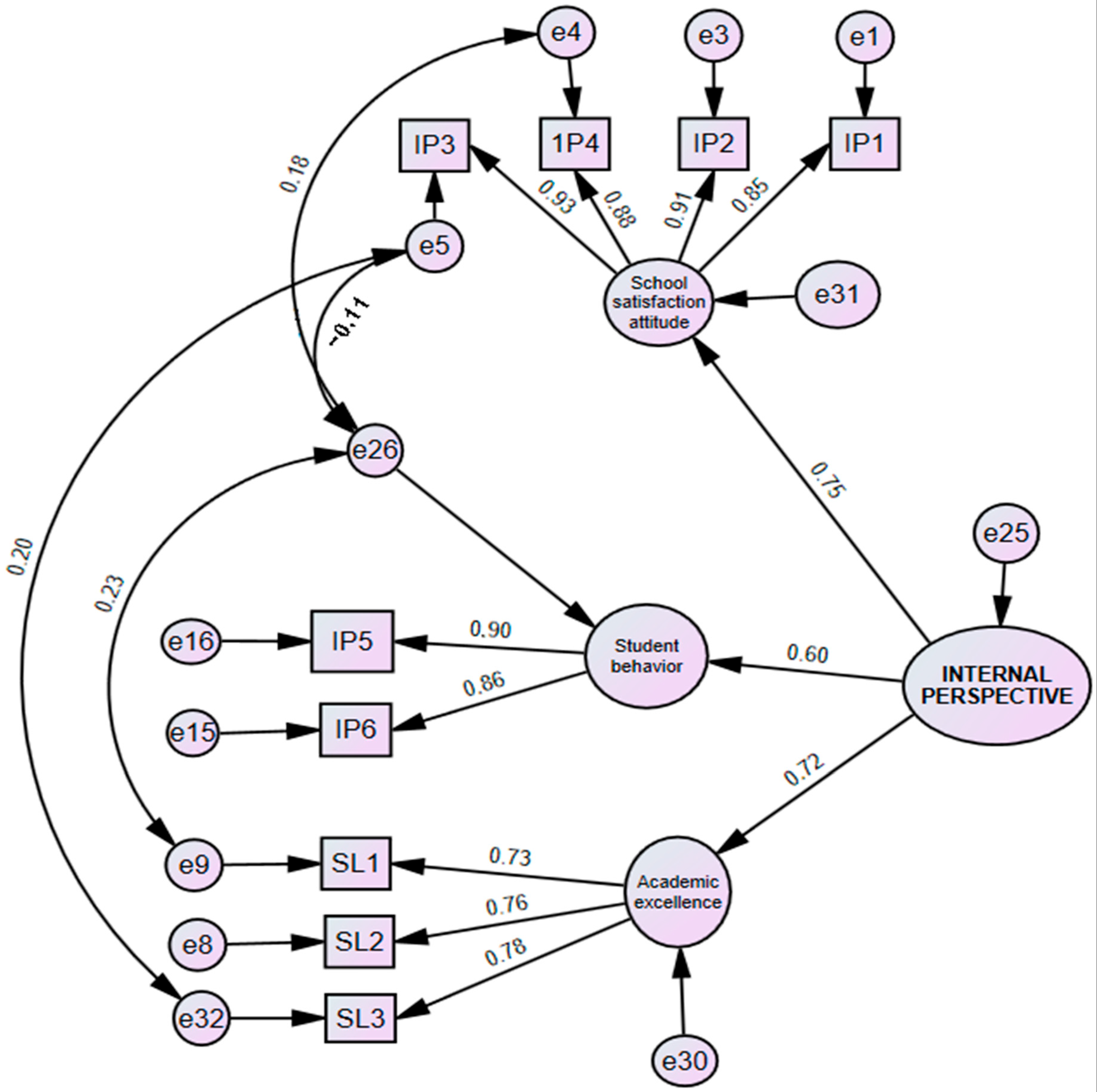 | Internal perspective (3.97) | School satisfaction & attitude (3.97) | IP1 3.99 |