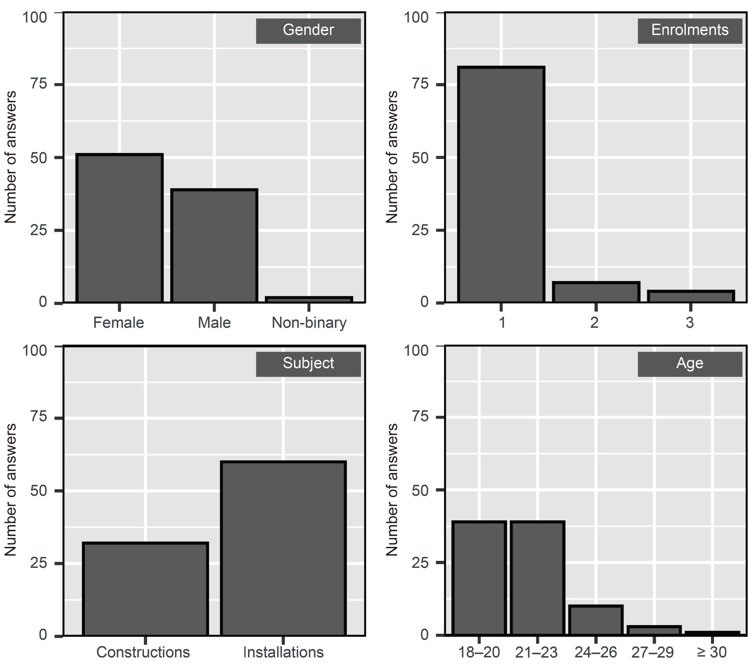 | Question | Age | Gender | Number of Enrollments | Subject | ||||