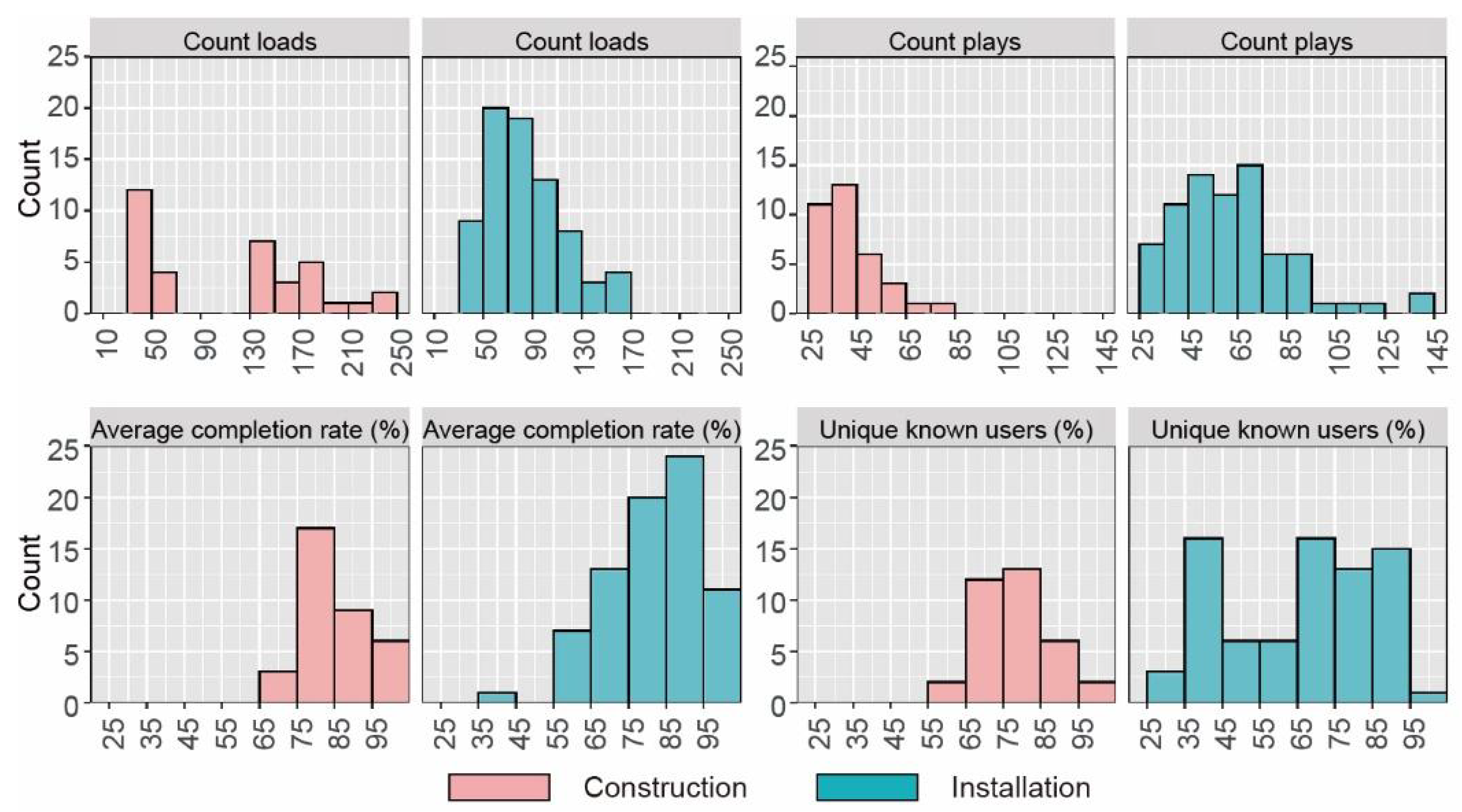 - Impressions (Count loads). A count of the number of times a student loads the video’s page (they do not have to play the video). Through this indicator, the aim is to evaluate the reach that the video has and the potential number of plays it may have. To evaluate the latter, the results had to be compared with the count plays.