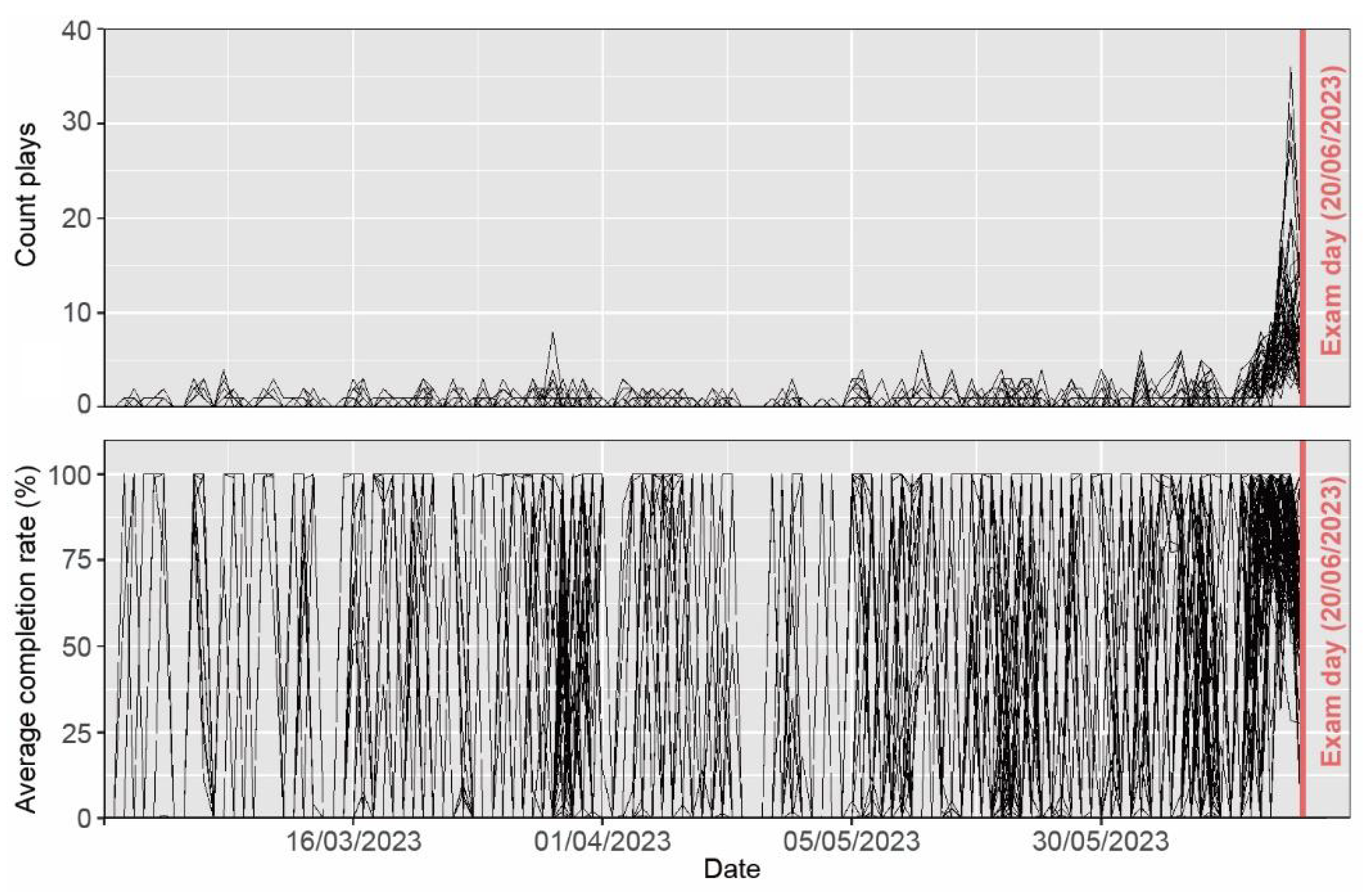 - Reach (Percentage of unique known users %). The percentage of the number of students over the total who viewed the video. In the number of students, the same student cannot appear two or more times. Through this variable, it can be controlled whether the videos were viewed by most of the students in the cohort.