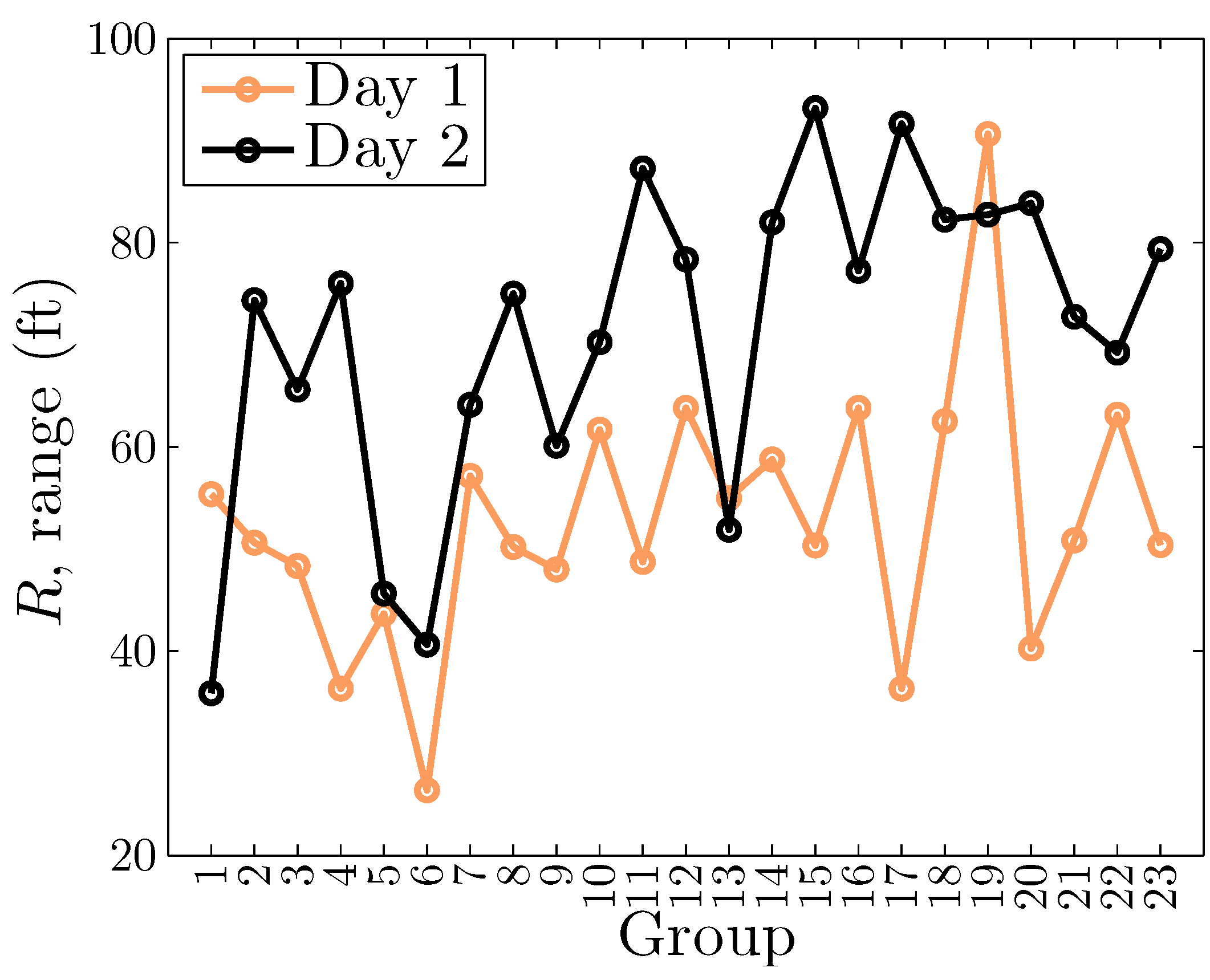 - ; There is a difference between mean launch distances of day 1 and day 2.