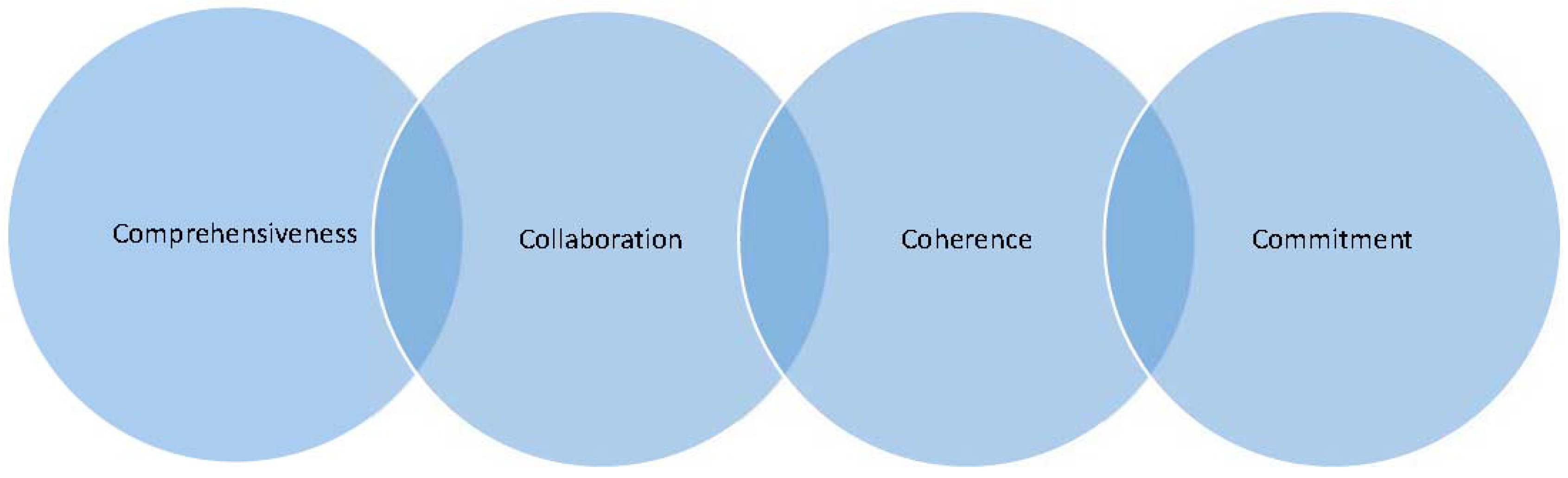 Various conceptual frameworks in the literature lay out factors that set well-functioning community schools apart from the traditional school model. The Children’s Aid Society (CAS) National Network of Community schools has developed, coordinated, and studied community schools in New York City and beyond since 1992. CAS puts forth both a developmental triangle for community schools (discussed further below in the Findings section) that includes: (1) core instructional programming; (2) expanded learning opportunities; and (3) comprehensive student supports. The developmental triangle is complemented by a framework of capacities that characterize well-developed community schools. In discussing our research findings below we will draw on the CAS framework of four capacities (4 Cs) that describe the community school model implemented well (see Figure 1). These competencies, which are intended as both a mindset and a skill set that enable communities to plan and execute an effective community school model, include: (1) Comprehensiveness; (2) Collaboration; (3) Coherence; and (4) Commitment [8]. First, community schools resolve to comprehensively address barriers to learning by meeting the multiple needs of children and families (Comprehensiveness). Well-functioning community schools take on student barriers to learning in structured partnerships with multiple stakeholders including community-based organizations. Further, these schools make intentional outreach efforts to these partners, share leadership, and ultimately develop interdependent relationships in carrying out their work [5,15] (Collaboration). Third, community schools and their partners negotiate shared perceptions, vision, and goals (Coherence) and, relatedly, align school and partner skills and activities accordingly. Finally, community schools aim for long-term sustainability based on this shared vision and goals (Commitment).