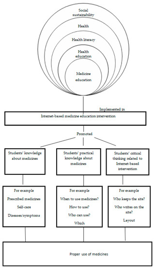 The theoretical framework and main results are shown in Figure 1. Medicine education as a part of health education promotes social sustainability and health in society. Health literacy in the context of Internet-based medicine education intervention entails rational medicine use and awareness of reliable information.
