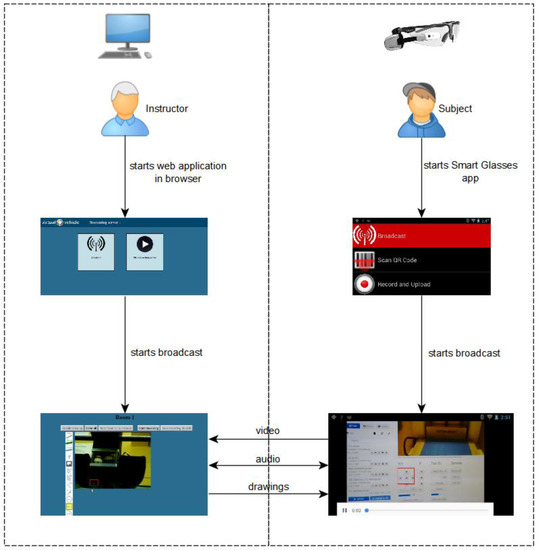 - The subject starts the smart glasses client app and connects to the already created room;