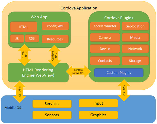 - Architectural Overview of Cordova Platform—Apache Cordova. Available online: https://cordova.apache.org/docs/en/latest/guide/overview/index.html (accessed on 26 November 2017).