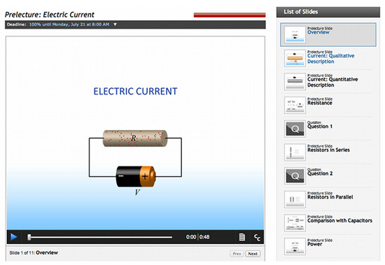- Sadaghiani, H. Online Prelectures: An Alternative to Textbook Reading Assignments. Phys. Teach. 2012, 50, 301–303. [Google Scholar] [CrossRef]