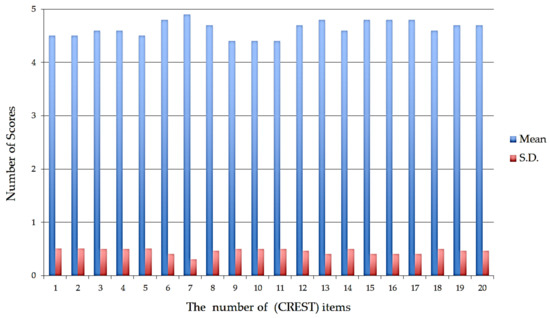 Figure 1 presents the mean scores and standard deviation of the extent to which the student-athletes understand each item of the new Turkish version of the CREST inventory. The mean scores are between 4 and 5, which means that the items are understandable.