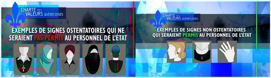 - Jobin, M. La Charte des Valeurs Proposée Par Le Gouvernement Québécois Est-Elle un Outil de Communautarisme? Radio-Canada International, 2013. Available online: http://www.rcinet.ca/fr/2013/09/10/la-charte-des-valeurs-proposee-par-le-gouvernement-quebecois-est-elle-un-outil-de-communautarisme/ (accessed on 27 April 2018).