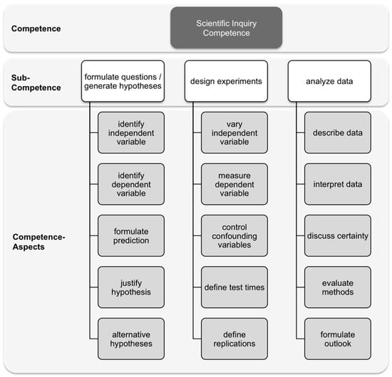 Overview of modeling scientific inquiry competence (sub-competences and aspects; Arnold, 2015).