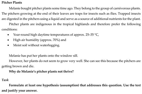 Sample test item “Pitcher Plants”; sub-competence “hypothesis” ([58]; translated).