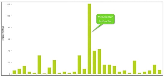 The results obtained from the transcript analysis show that three of the six interactions [,] student–student, student–teacher and student–content are represented in the data. Both student–student and student–teacher interactions were found in combination with the core elements of CoI [], i.e., social presence, teaching presence, and cognitive presence. Student–content interaction took place as a consequence of student–student (cognitive) interaction, as Blackboard was used to host the formal study material. Some students shared extra resources and additional literature, e.g., by sharing a link to a video or a relevant article. Other students then interacted with that content by, e.g., clicking on these links.