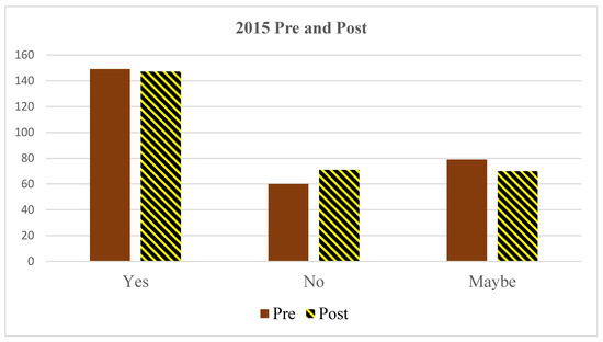 If answers (yes, no, and maybe) given for the scenarios, pre-test and post-test, 2015.