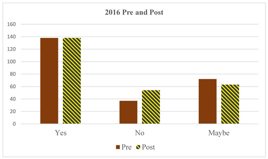 If answers (yes, no, and maybe) given for the scenarios, pre-test and post-test, 2016.