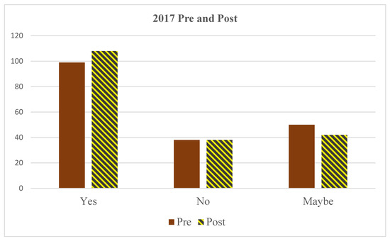 If answers (yes, no, and maybe) given for the scenarios, pre-test and post-test, 2017.