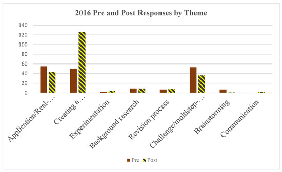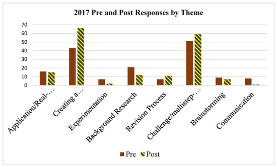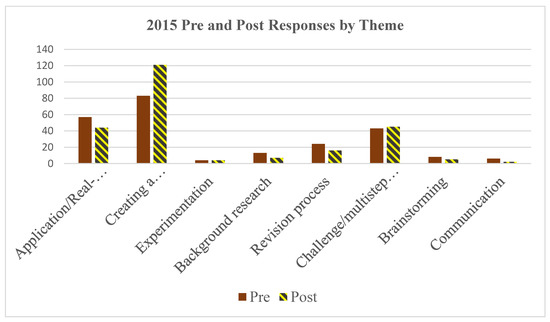 A novice level of understanding also became apparent by the number of responses that cited an over-simplified short phrase representing the creating a product/design/model theme as a component of engineering. This ‘product for a problem’ theme represented the most-often cited reason for categorizing the activity as engineering and was also the only theme that increased from pre-test to post-test in every cohort year. Novice knowledge does not entail the rich, multiple connections with other knowledge domains that is characteristic of expert knowledge [30]. Moreover, novices are less able to recognize subtle but important patterns and the significance of those patterns [23,30]. By applying an oversimplified, easy-to-remember phrase to many scenarios, participants revealed their inexperience with nuances and considerations that each scenario brings to bear. It is noteworthy to add that the science educator might have proliferated this participant response by repeating the phrase during the science methods coursework.