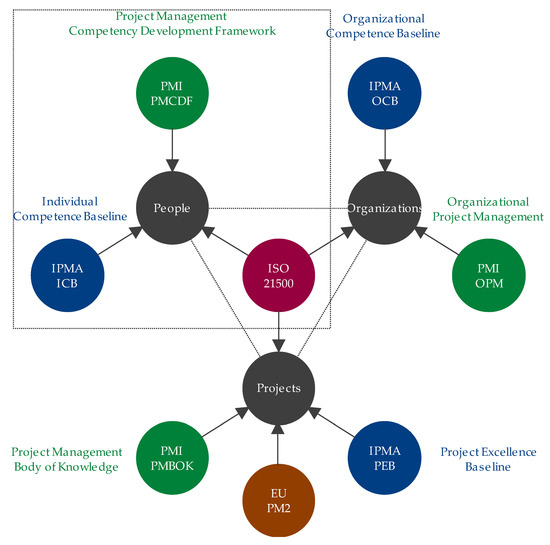 On the one hand, the standard ICB 4 by IPMA [31] offers unique and role-specific competence development guidelines for improving project success, training and certifying practitioners. These professionals will probably work in disseminated environments with overlapping and conflicting stakeholder interests. In most cases, real-time data and performance management tools will shape them, too much information and not enough communication will challenge them, and their ability to deliver outcomes that align with short- and long-term strategies will judge them.