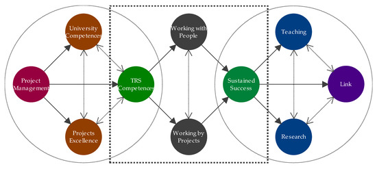 In summary, PM by competences, thanks to its intrinsic transverse and humanistic condition, covers management requirements in any sector [52], including research and education, which is considered as a professional sector as any other in this research. Within this framework, development of competences by the TRS allows achieving better project performance, thanks to growing motivation, better self-organization and reduced need for centralized control [53]. However, there are many ways of acquiring and improving them, depending on the organizational structure and its integrated management system, as well as on singularities and functions found in the organization chart in which they are located, as professional workers of the research and education sector.