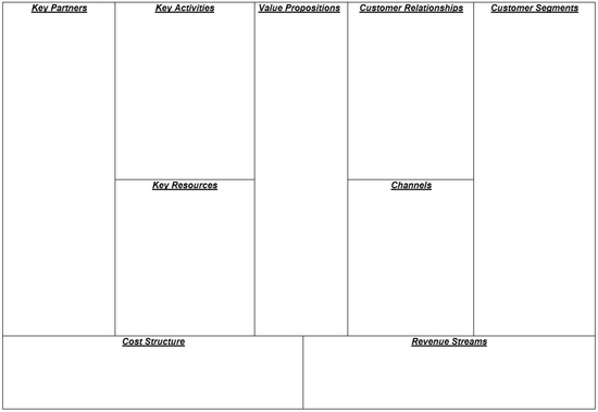 - Osterwalder, A.; Pigneur, Y. Business Model Generation; John Wiley and Sons Inc.: Hoboken, NJ, USA, 2010. [Google Scholar]