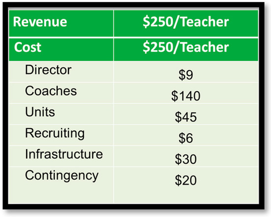 The CEEMS teachers acquired the skills to successfully implement the above through a two-year commitment to complete 20 credits of graduate coursework. Their tuition fees covered course credits and additional funds covered longitudinal face-to-face guidance, critical reviews of their work, and continuous feedback and approval by professional coaches during both the development and implementation stages. In CEEMS this was possible because NSF funds covered all these costs. Recognizing limitations in the I-Corps L project, a goal was established to bring to scale a tested teacher PD program, CEEMS, so that the practice of its primary pedagogies (CBL and the EDP) could be sustained and even expanded on when funding from the NSF ran dry. The parameters for the scale-up were set to be:
