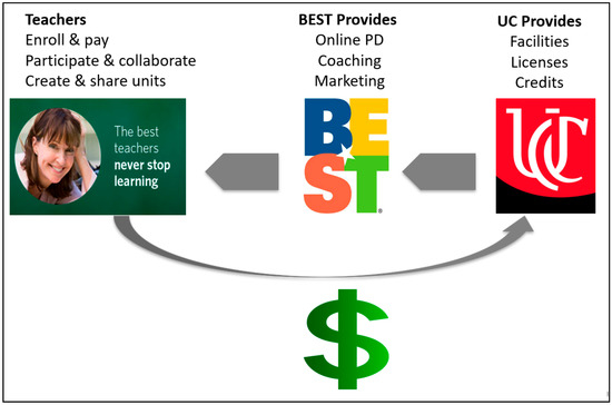 Despite this new engineering focus, K–12 science and mathematics teachers are often intimidated and unsure how to incorporate engineering practices in their classrooms. As a result, professional development (PD) has emerged to address this very issue. The most powerful instrument for change lies at the core of education—teaching itself [5,6,7]. Successful learning is a shared experience between a knowledgeable, enthusiastic teacher and curious, self-assured students [8,9,10,11,12,13]. The efficacy of combining PD that improves teaching effectiveness with standards-based (K–12) curriculum is becoming evident [14,15,16,17], as are better ways of retaining effective teachers [18]. Teacher education needs to be iterative; it depends on sustained, coherent, collaborative, and reflective high-quality PD [19,20,21,22], high-level science content [23], and an understanding of the social, contextual, and distributed nature of learning [24].