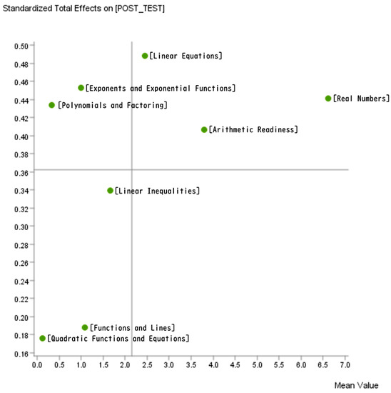 Quadrant analysis of the total effects of the various mathematics topics on the target node.