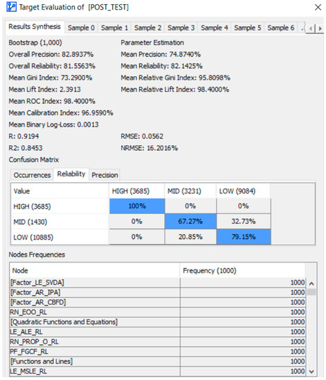 Evaluation of predictive performance of BN on the target (the scores of the post-test).