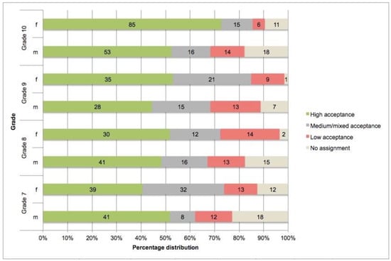 - Holstermann, N.; Bögeholz, S. Interesse von Jungen und Mädchen an naturwissenschaftlichen Themen am Ende der Sekundarstufe I [Interest of boys and girls on scientific issues at the end of lower secondary education]. Z. Did. Naturwiss. 2007, 13, 71–86. [Google Scholar]