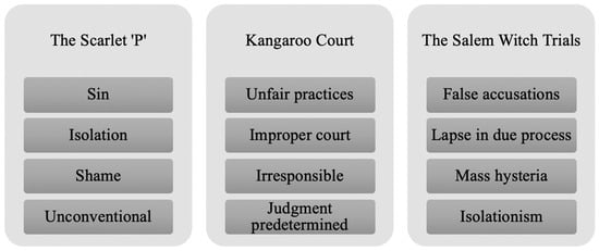 The third theme that emerged was The Salem Witch Trials, which historically were characterized by false accusations, lapses in due process, mass hysteria, and isolationism. The findings of this study suggest the same tendencies within teacher evaluation processes. Additionally, court case decisions, such as Vergara v. California [25,26], indicated lapses in due process through litigation funded by the wealthiest people and organizations. Mass hysteria was a theme illustrated by the media, reports, federal policies, and competitive grants that were designed without the empirical research to support the shift in accountability from school to teachers. Interview data suggested that false accusations and isolationism existed among those who were referred to PAR.