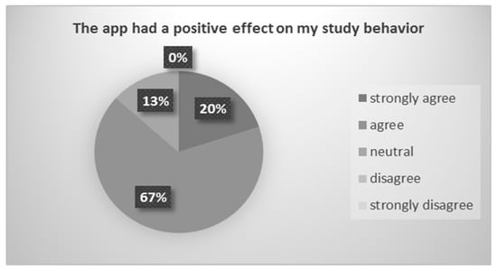 The results of the evaluation questionnaire concerning the impact of the use of the mobile app on students’ study behavior revealed that students felt very positive about it (Figure 3).