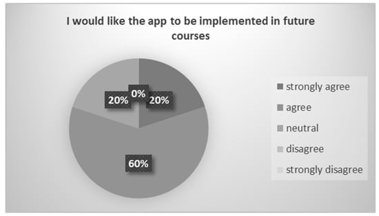 Eighty percent of the respondents would also implement such a mobile app in other courses taught at the faculty (Figure 5).
