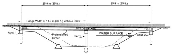 The project objective was to fully design the precast prestressed concrete girders (known as pretensioned girders) for a 2-span bridge of 25.09 m (85 ft.) each span and width of 11.9 m (39 ft.). Figure 4 shows the elevation for the proposed bridge; designing the reinforcement for the bridge slab was not required. The project was structured as follows: