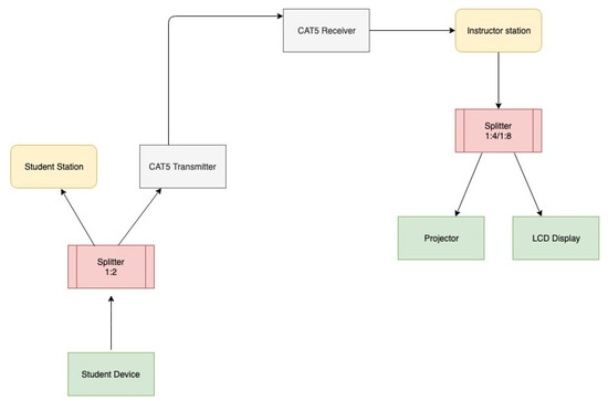 When comparing PALS, HBS and a traditional ALC, there are several clear distinctions. First, PALS and the HBS system are much more limited in functionality than a traditional ALC. Many ALCs have video cameras to record and/or project students or instructors onto classroom displays, instructor pagers are present, and there are microphones for student use. This additional functionality maybe advantageous for very large classrooms but such settings are not the norm for engineering disciplines. Arguably, the key aspects of an ALC that support student collaboration (e.g., local screen sharing, arrangement of student seating into pods, easy class-wide projection of students’ digital artifacts) are present in PALS and HBS, but at a fraction of the cost. A PALS system can be constructed for approximately $8185 while a HBS system consisting of 8 student stations and 3 large LCDs can be constructed for approximately $4705. In terms of functionality, a PALS system offers a few additional features such as the ability to monitor all student stations via a WebUI, recording what is displayed on student stations and remote access and control of the system. Since each of the PALS student stations is a PC running a Linux stack, they do need to be configured and maintained. In practice, this can be done making use of a software configuration tool such as Puppet. Still, since the HBS does not make use of software, no configuration or maintenance is required. The smaller footprint of the HBS system also lends itself better to singular deployments in which an enterprising instructor could set up the system on a per-class basis.