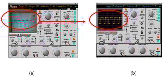 User interface of the virtual lab for oscilloscope’s display. (a) WebCam capture; (b) LabVIEW imports picture.