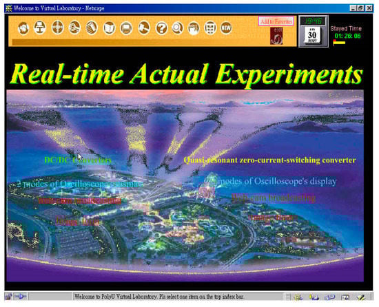 - Kikuchi, T.; Fukuda, S.; Fukuzaki, A.; Nagaoka, K.; Tanaka, K.; Kenjo, T.; Harris, D. DVTS-based remote laboratory across the Pacific over the gigabit network. IEEE Trans. Educ. 2004, 47, 26–32. [Google Scholar] [CrossRef]