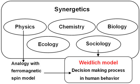 Weidlich model in “Synegetics. In the framework of synergetics for interdisciplinary realms, the Weidlich model can describe the human decision-making process by an analogy with the ferromagnetic spin model.