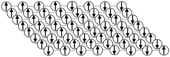 Mathematical models whose components have two states are used for various fields as well as physics, for example, neuroscience [8], sociology [9] and economics [10]. The sociological model of these types was originally established by Weidlich in 1971 [11]. In the framework of synergetics, the Weidlich model was constructed by an analogy between human decision-making mechanisms and the ferromagnetic spin model in statistical physics (Figure 2). Nowadays, the Weidlich model has many applications [4,5].