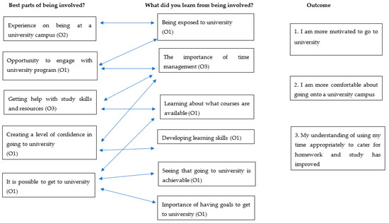 Students stated that the program gave them the experience of being on campus and an opportunity to engage with a university program, which was a new experience for most. They were also able to access help with study skills and resources, and grew in confidence to go to university. Some students realized that university was a viable option for them. The program is therefore addressing a clear need for these students, giving them a more confident expectation of and relationship with higher education, and developing study and resource-accessing skills that will help their futures, even if they do not decide to study at university.
