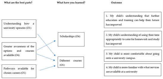 There was a strong correlation between the lack of educational attainment from parents and the desire to have their children take part in it. Year 12 further highlighted this correlation, with 55.56% of participants having neither of their parents attend university and no parents in the study discouraging attendance. It is known that parents are the single greatest influencers upon a child to attend university [29], but where parental knowledge of university systems is not strong, university staff as “trusted adults” [17] in [18] p. 119 can help to bridge this gap more effectively.