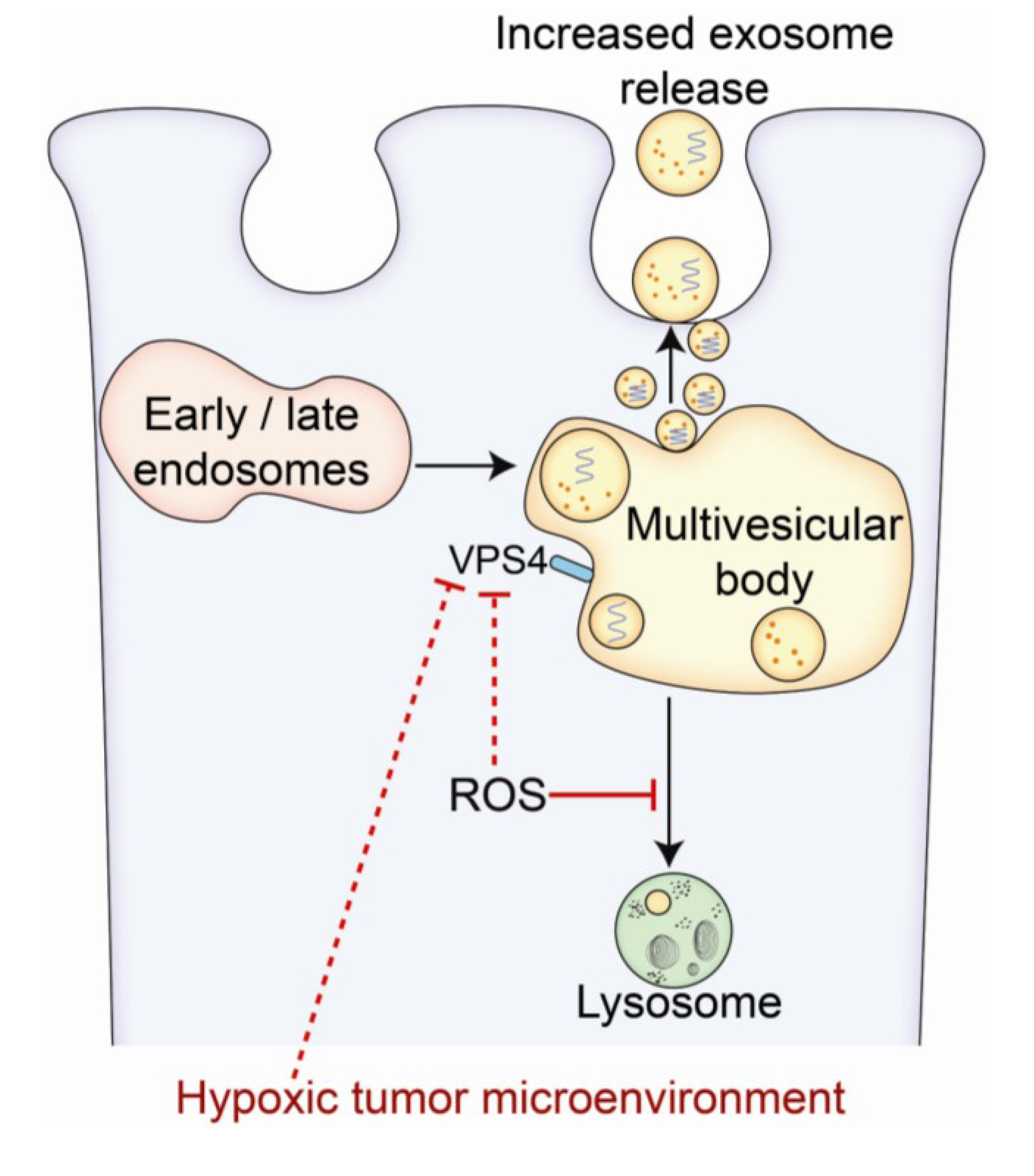 Increased exosome release resulting from hypoxia or reactive oxygen species (ROS)-induced VPS4 dysregulation.