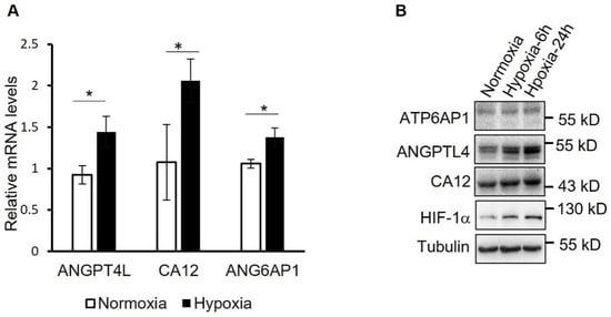 ANGPT4L: 5′-CCTCTCCGTACCCTTCTCCA-3′ (forward) and 5′-AAACCACCAGCCTCCAGAGA-3′(reverse); ATP6AP1: 5′-AGCGACTTGCAGCTCTCTAC-3′(forward) and 5′-CCTCAATGCTCAGCTTGTCC-3′(reverse); CA12: 5′-CAGTTTTCCGAAACCCCGTG-3′(forward) and 5′-GCAGTACAGACTTGCACTTGG-3′(reverse); PPIA: 5′-ATGGCGGTGGCAAATTCAAG-3′(forward) and 5′-CCGTCTTAGGCACAACGTCTG-3′(reverse).
