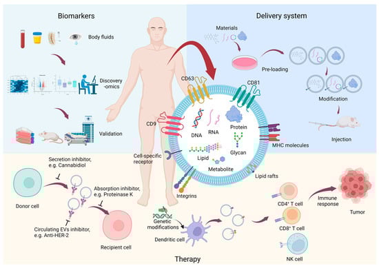 The application of EVs derived from various body fluids (created with BioRender.com).