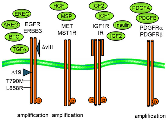 - Lemmon, M.A.; Schlessinger, J. Cell signaling by receptor tyrosine kinases. Cell 2010, 141, 1117–1134. [Google Scholar] [CrossRef] [PubMed]