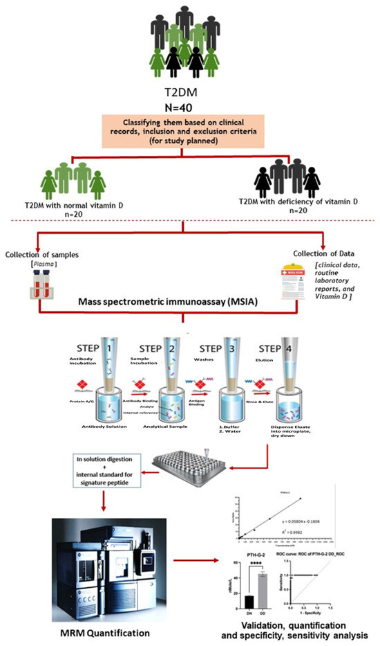 Benabdelkamel H, Nimer RM, Masood A, Al Mogren M, Abdel Rahman AM, Alfadda AA. Multiple Reaction Monitoring–Mass Spectrometric Immunoassay Analysis of Parathyroid Hormone Fragments with Vitamin D Deficiency in Patients with Diabetes Mellitus. Proteomes. 2024; 12(4):30. https://doi.org/10.3390/proteomes12040030
